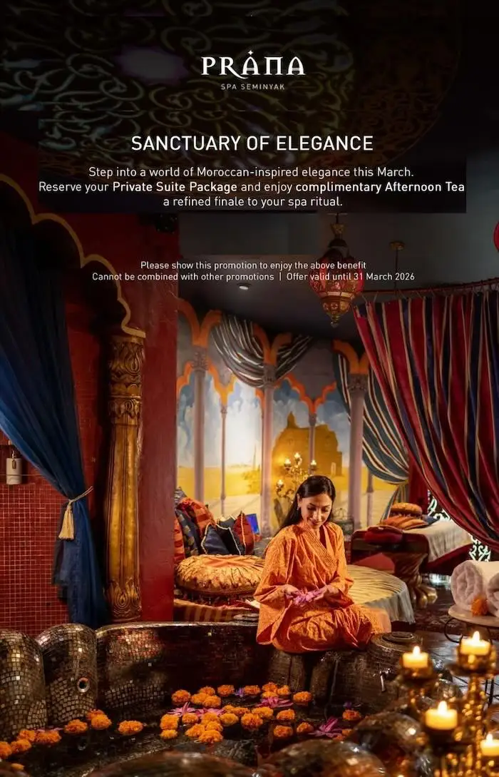 Immerse yourself in a complete rejuvenation experience with our Regal Escapade. Your journey begins with a Relaxation Sea Salt Scrub, followed by a refreshing Vichy Shower to exfoliate and cleanse your body thoroughly. Soothe your feet with a calming Prana Foot Ritual before unwinding with a Deluxe Sensatia Full Body Massage. This luxurious massage is complemented by Cleopatra’s Rose Facial, which restores moisture and radiance to your skin, leaving it revitalized. Next, immerse yourself in a sumptuous Flower Bath, a serene oasis for relaxation. Follow this with the nourishing application of Sensatia Body Butter to hydrate your skin, and indulge in a Horsetail Cream bath to rejuvenate your hair. Complete your retreat with a relaxing manicure and pedicure, ensuring head-to-toe pampering. To cap off your escape, savour a delightful Afternoon Tea, making this regal experience the ultimate in relaxation and renewal.* All prices are in thousands Indonesian Rupiah and are subject to 15% government tax and 10% service charge.